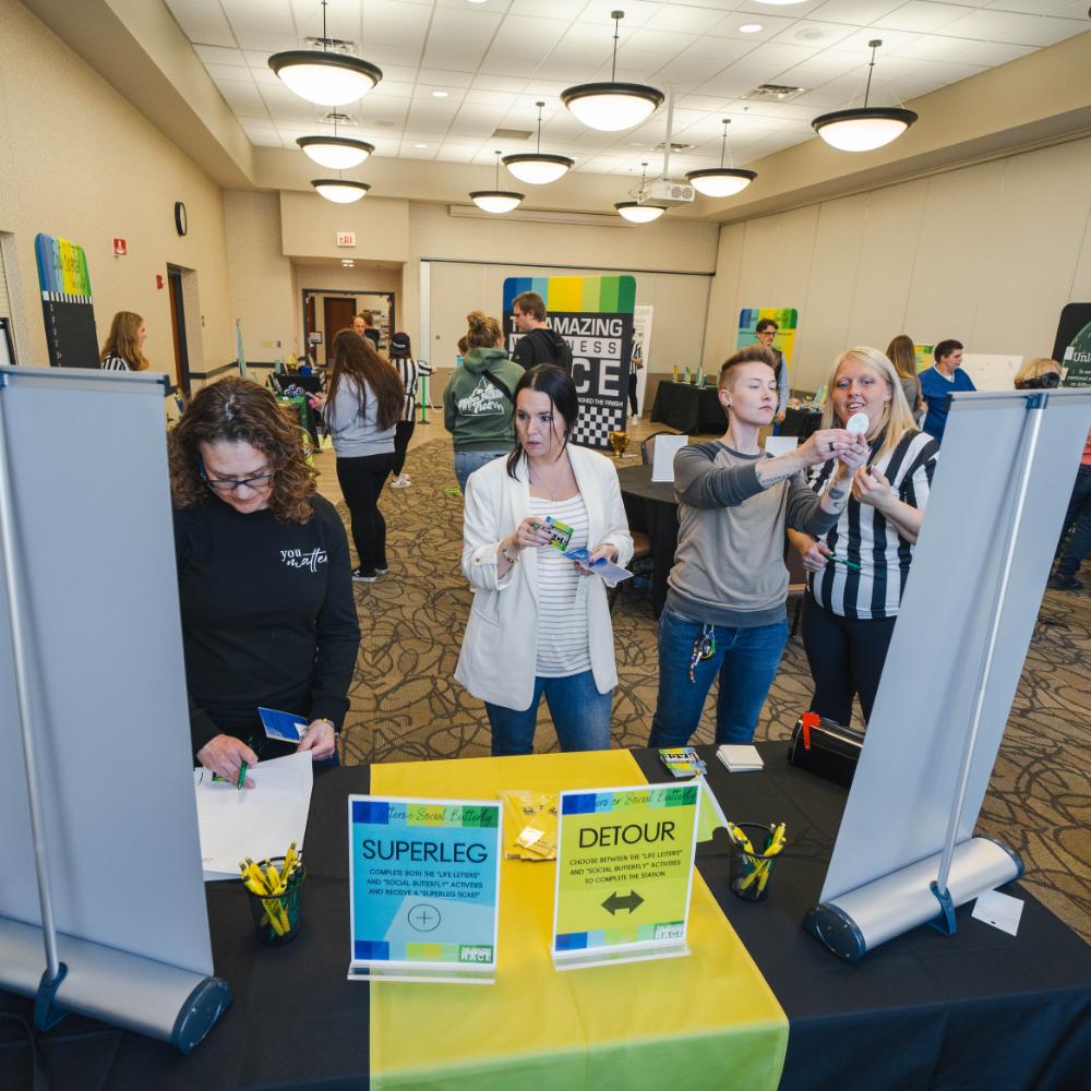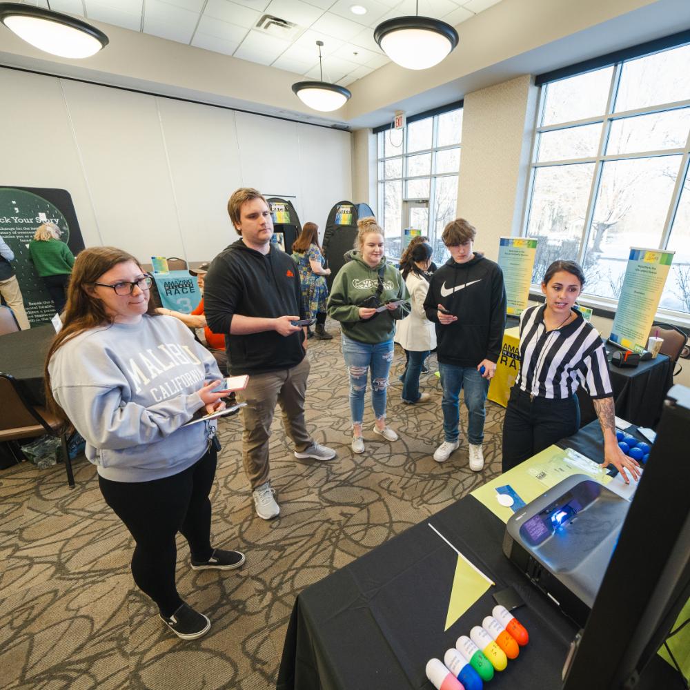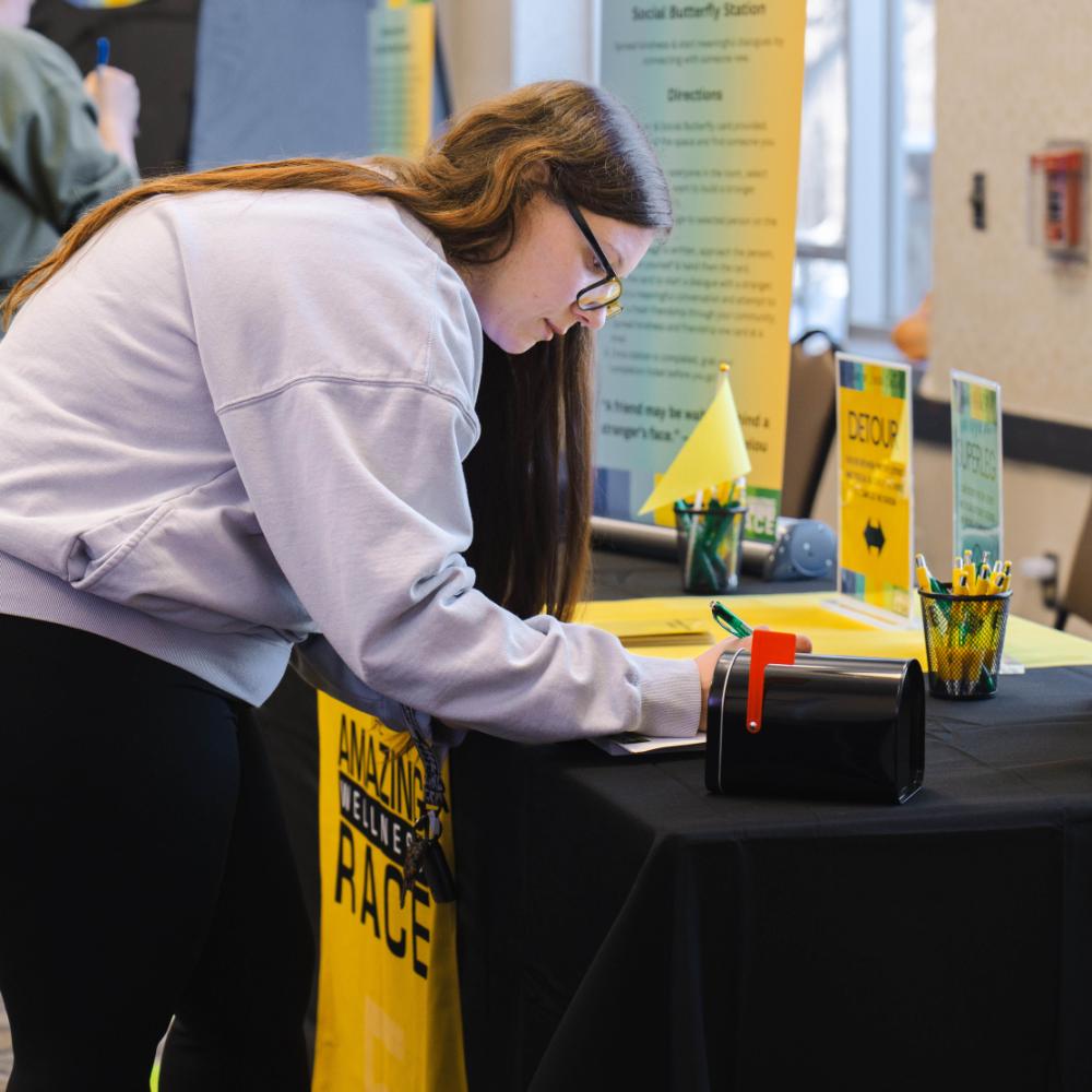 The Amazing Wellness Race (TAWR) is not your typical race — it's an immersive wellness experience designed to promote mental health, self-discovery, and overall well-being. Unlike traditional mental health fairs, TAWR offers up to 8 engaging stations, plus a Start and Finish Line, with activities focusing on mental and physical wellness. These stations, crafted by a team of dedicated experts including an education major and a seasoned psychiatric nurse, present diverse learning objectives and cater to various learning styles such as kinesthetic, tactile, visual, and more. From affirmation exercises, trivia, board games, movement options, and more; each activity is crafted to nurture a sense of wellness and connection within the campus community.