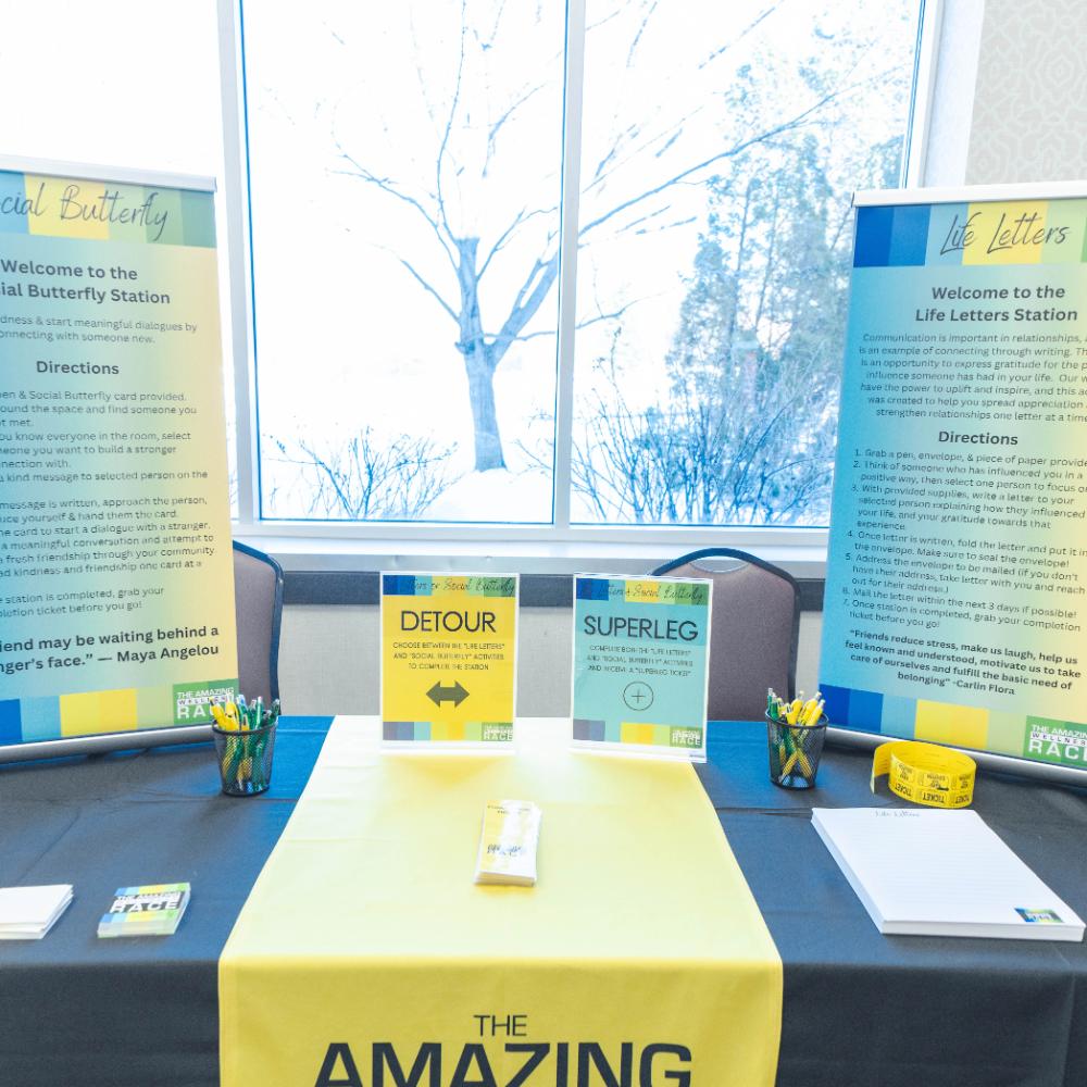 But here's the twist --- The Amazing Wellness Race is not about speed or victory; it is about embracing each moment, fostering self-care, and supporting one another. Inspired by the TV show, "The Amazing Race", be prepared to see familiar verbiage with opportunities for Detours, Pit Stops, Superlegs, Fast Forwards, Intersections, and more! Photo opportunities and prize incentives are also included for an extra layer of excitement! No Roadblocks, Speed Bumps, Hazards, Yields, or Eliminations will be in this race. Unlike the TV show, our focus is solely on promoting wellness, so no competitive or elimination elements are included. During The Amazing Wellness Race, participants collect passport stamps at each station they complete and turn in completed passports at the Finish Line to receive a "TAWR Completion Certificate" as a keepsake of their wellness triumph. Whether you're a seasoned wellness enthusiast or just beginning your journey, The Amazing Wellness Race offers something for everyone.
